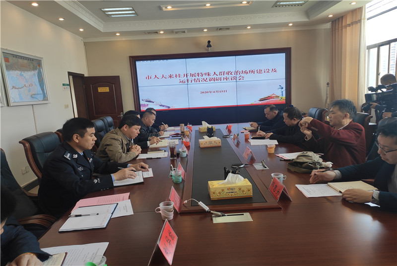 上午,调研组一行实地查看了桂阳县强制隔离戒毒所,详细了解了县强制隔离戒毒所的建设及运行情况。随后,调研组在县行政中心召开座谈会。县政府副县长唐朝铭汇报了县强制隔离戒毒所建设情况与我县特殊人群管控情况,提出了特殊人群收治的工作建议。与会人员结合工作实际,提出了特殊人群收治工作存在的问题、困难及意见建议。