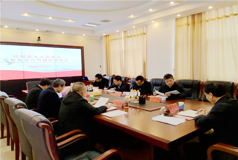 会上,县人大常委会联工委传达了全国、省、市人大常委会关于实施宪法宣誓制度的相关精神,解读了《桂阳县人民代表大会及其常务委员会宪法宣誓办法》,并就贯彻落实提出具体要求。县政府办、县法院、县检察院、县司法局分别汇报了自2015年我国宪法宣誓制度正式确立以来,本系统本部门实施宪法宣誓制度的相关情况及存在的问题,与会人员并就如何全面落实宪法宣誓制度开展交流探讨。