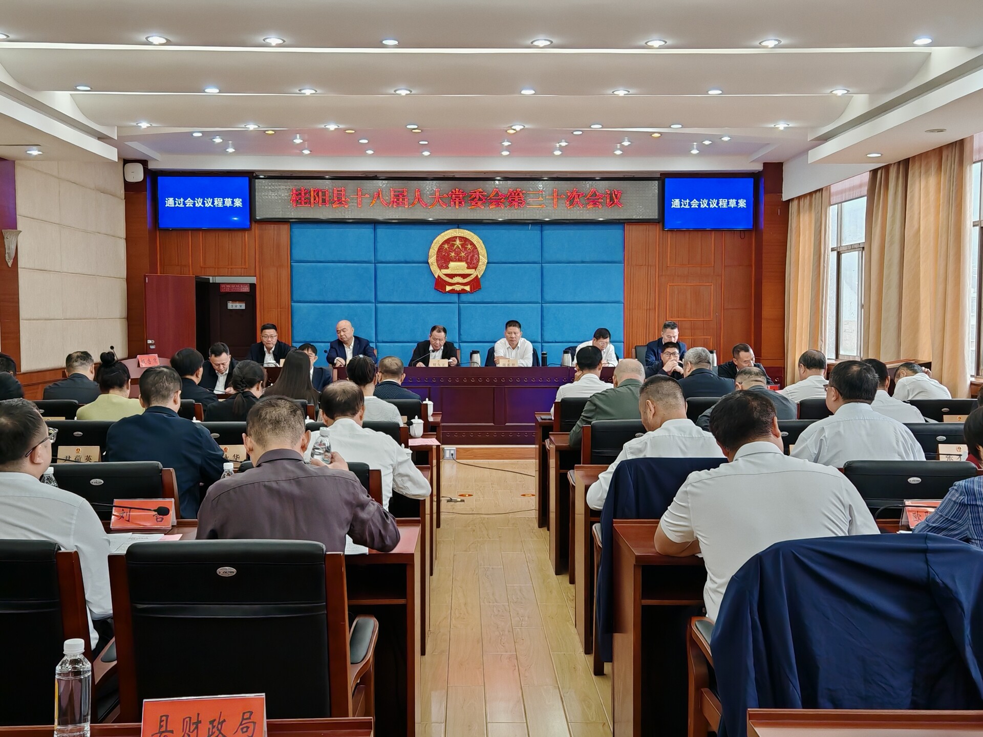 会议审议通过了《桂阳县第十八届人民代表大会代表补选工作实施方案(草案)》《关于补选桂阳县第十八届人民代表大会代表选举日的决定(草案)》;会议听取和审议了县人民政府关于2025年上半年国民经济和社会发展计划执行情况的报告、关于2024年财政决算(草案)和2025年上半年预算执行情况及2025年预算调整方案(草案)的报告、关于2024年度预算执行和其他财政收支的审计工作报告,审查和批准了2024年财政决算、2025年预算调整方案;听取和审议了县人民政府关于全县2023年环境状况和环境保护目标完成情况报告审议意见研究处理情况及2024年环境状况和环境保护目标完成情况的报告。