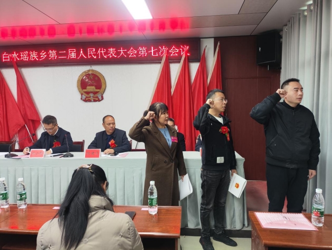 大会经过投票,选出了白水瑶族乡人民代表大会副主席1名、白水瑶族乡人民政府副乡长1名。白水瑶族乡人民代表大会主席陈建平同志向新当选的副主席和副乡长颁发当选证书。会上白水瑶族乡党委副书记欧剑领词,新当选的白水瑶族乡人民代表大会副主席和副乡长在会上庄严宣誓。